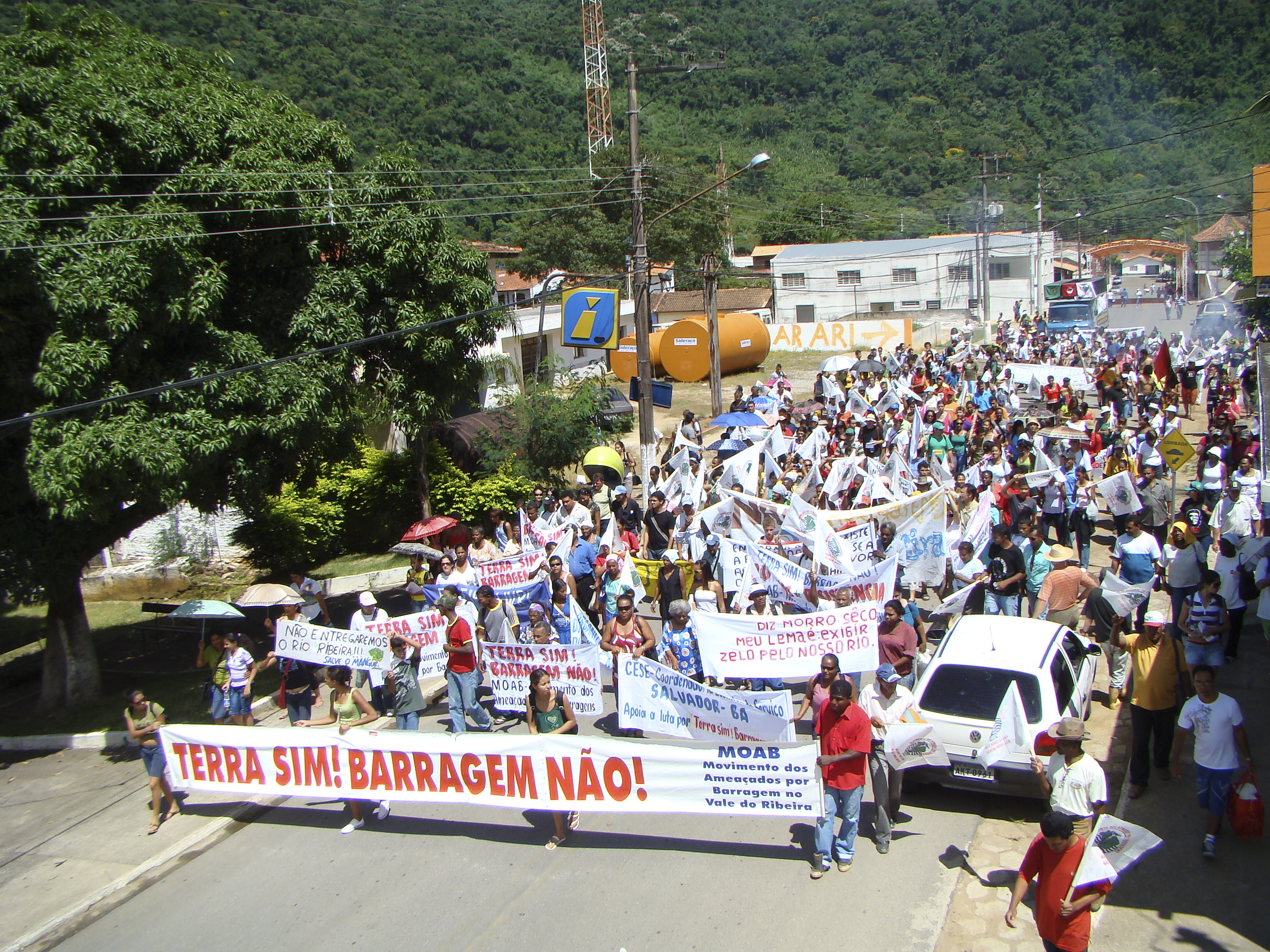 Na data em que se comemora o Dia Mundial de Luta contra Barragens, 14 de março, o Movimento dos Ameaçados por Barragens (Moab), do Vale do Ribeira (SP), promoveu em Adrianópolis (PR) uma caminhada de dois quilômetros para protestar contra o projeto de construção da hidrelétrica de Tijuco Alto