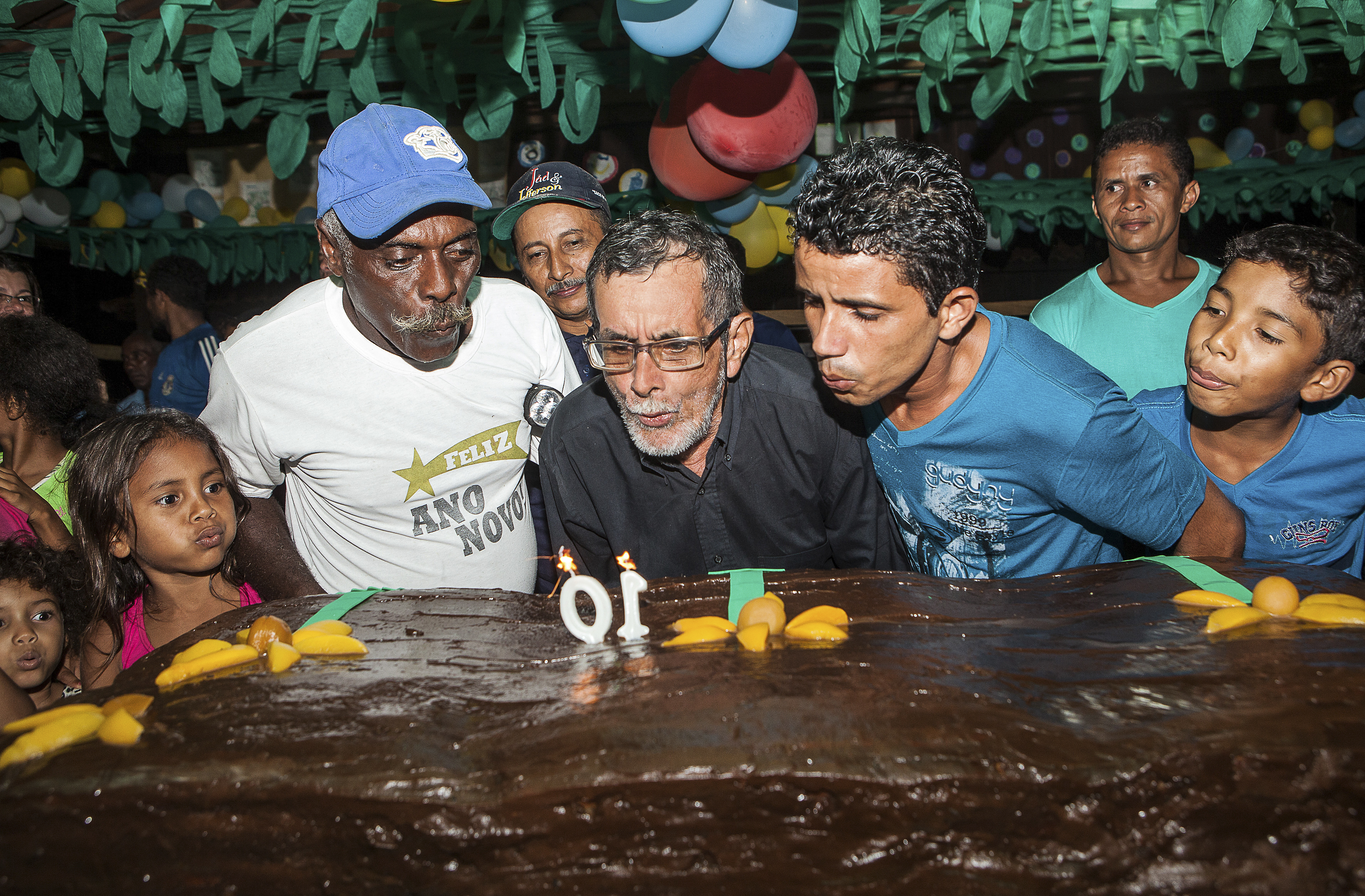 Luiz Augusto Conrado Amaro (Machinha), Herculano Porto e o filho, Edileno (presidente da Amora - Assoc. de Moradores da Resex Riozinho do AnfrÃsio) apagam a vela em comemoração aos 10 anos de criação da Resex.