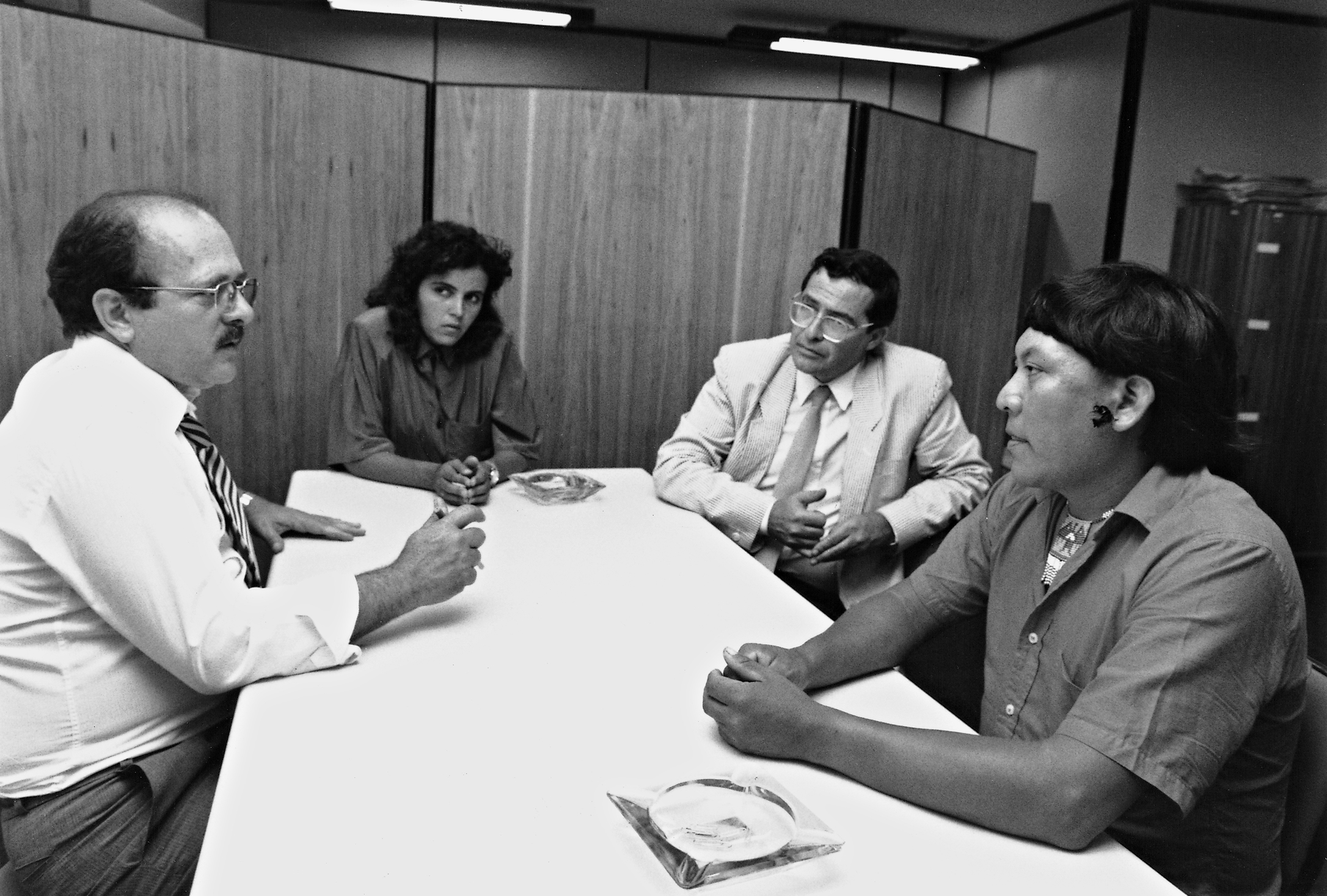 Da esq. p/ dir: Ana Valéria Nascimento Araújo Leitão, Carlos Frederico Marés de Souza Filho (advogados do Núcleo de Direitos Indígenas (NDI) e Davi Xirianá Kopenáwa Yanomami, porta-voz da tragédia vivida pelo seu povo em todo o Brasil, Procuradoria Geral da República, Brasília.